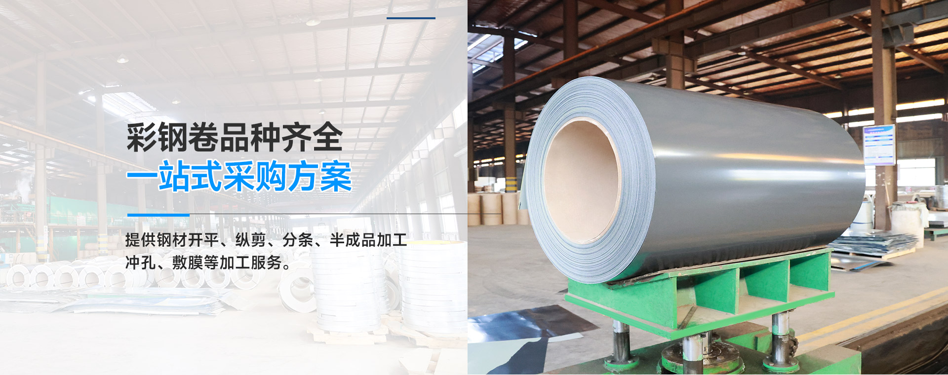 提供鋼材開平、縱剪、分條、半成品加工、沖孔、敷膜等加工服務。